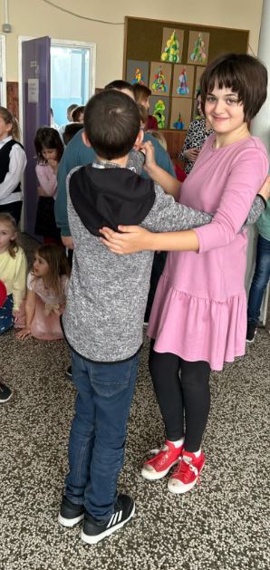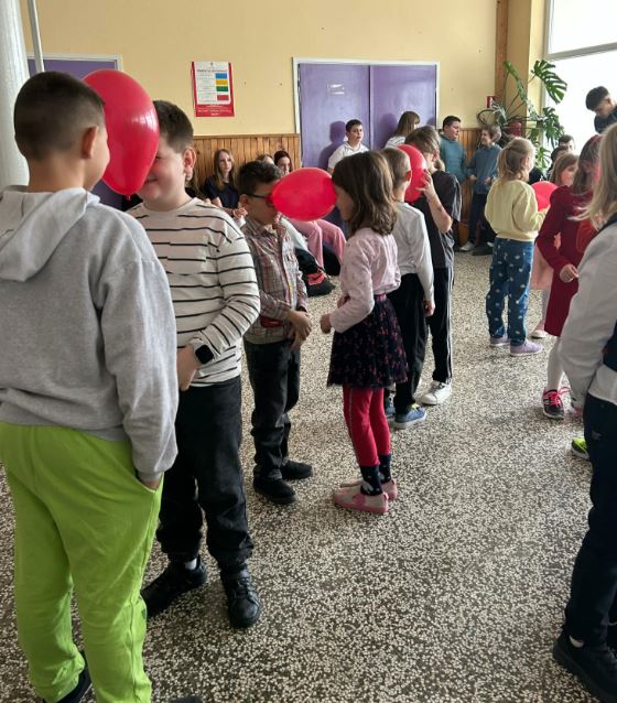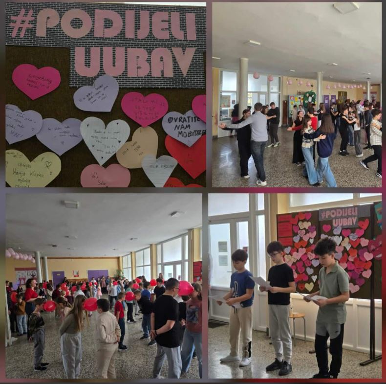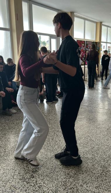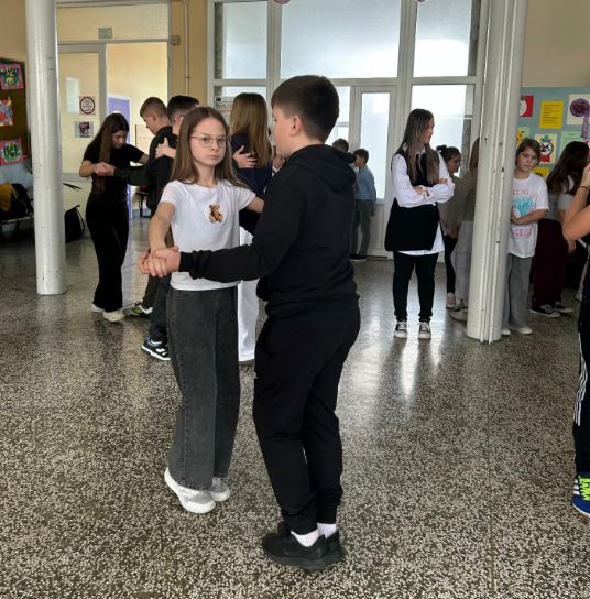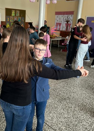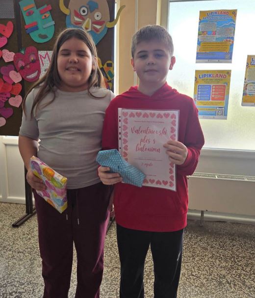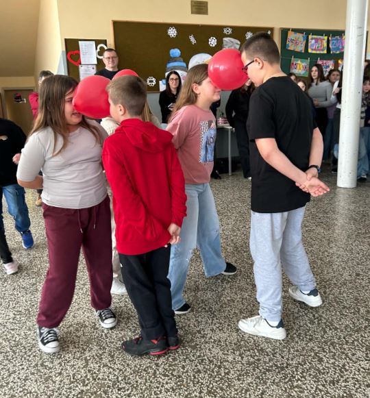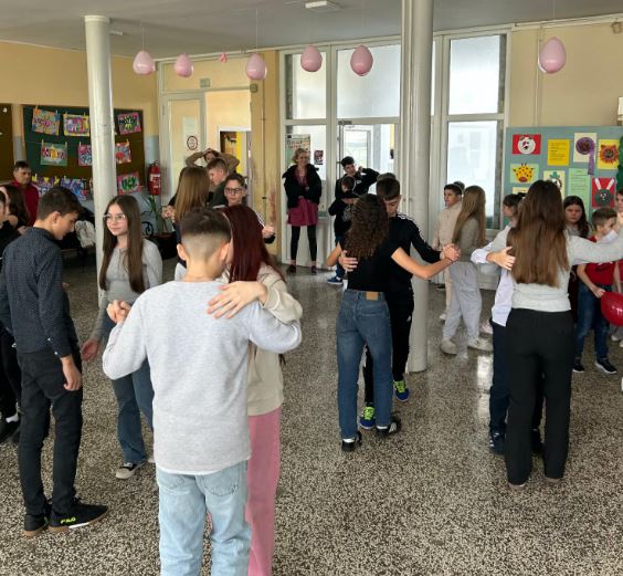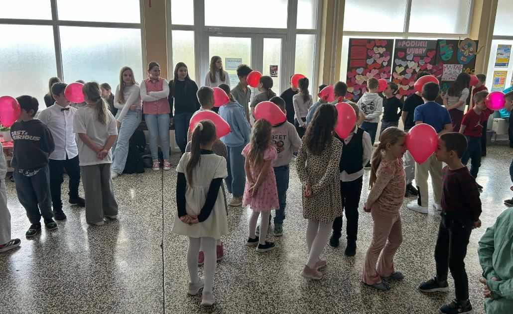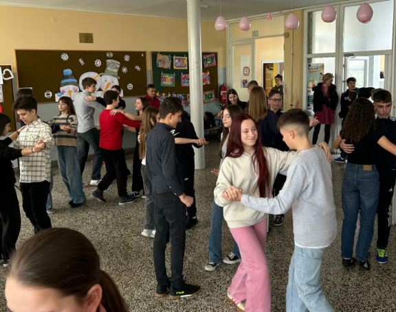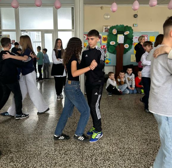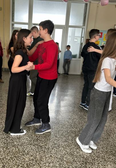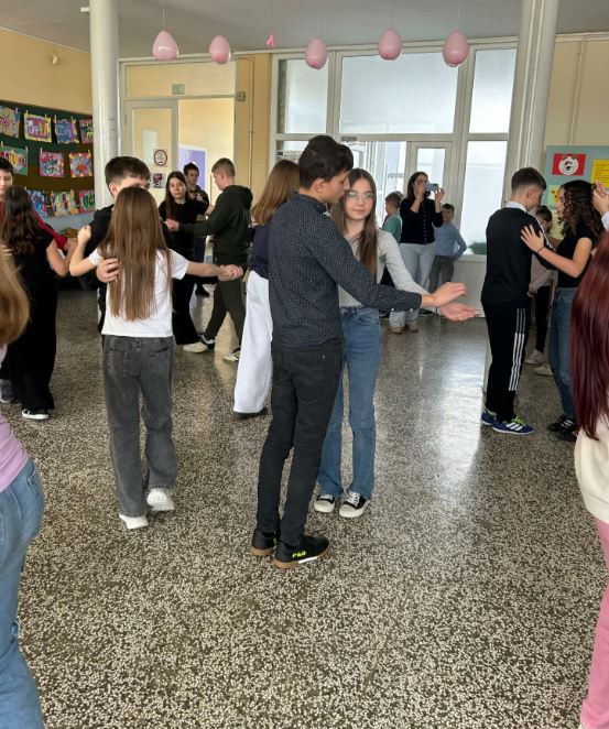 U predvorju škole održan je valentinovski ples na kojem su sudjelovali učenici svih razreda. Učenici nižih razreda plesali su uz razigranu glazbu okruženi šarenim balonima, koji su dodatno uljepšali prostor i stvorili pravo svečano ozračje. Njihov ples bio je veseo i pun smijeha, a svi su s velikim uzbuđenjem sudjelovali u programu.