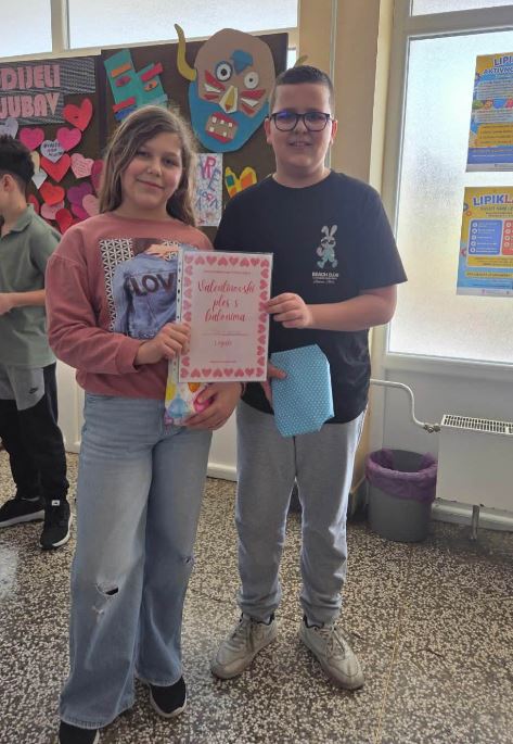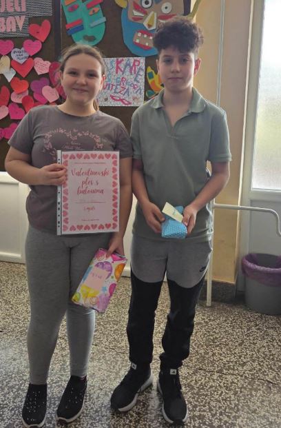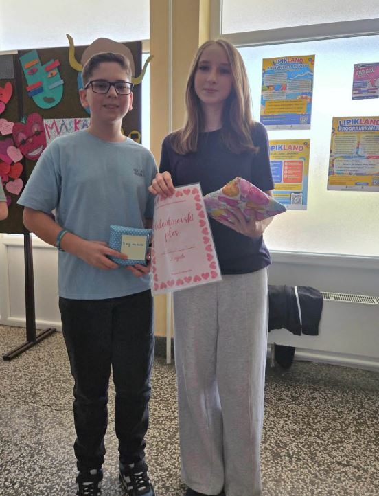 Dana 13. veljače u našoj školi održan je prigodni program povodom Valentinova. Školsko predvorje bilo je posebno uređeno i ispunjeno veselom atmosferom, a cijeli događaj protekao je u znaku plesa, glazbe i dobrog raspoloženja.